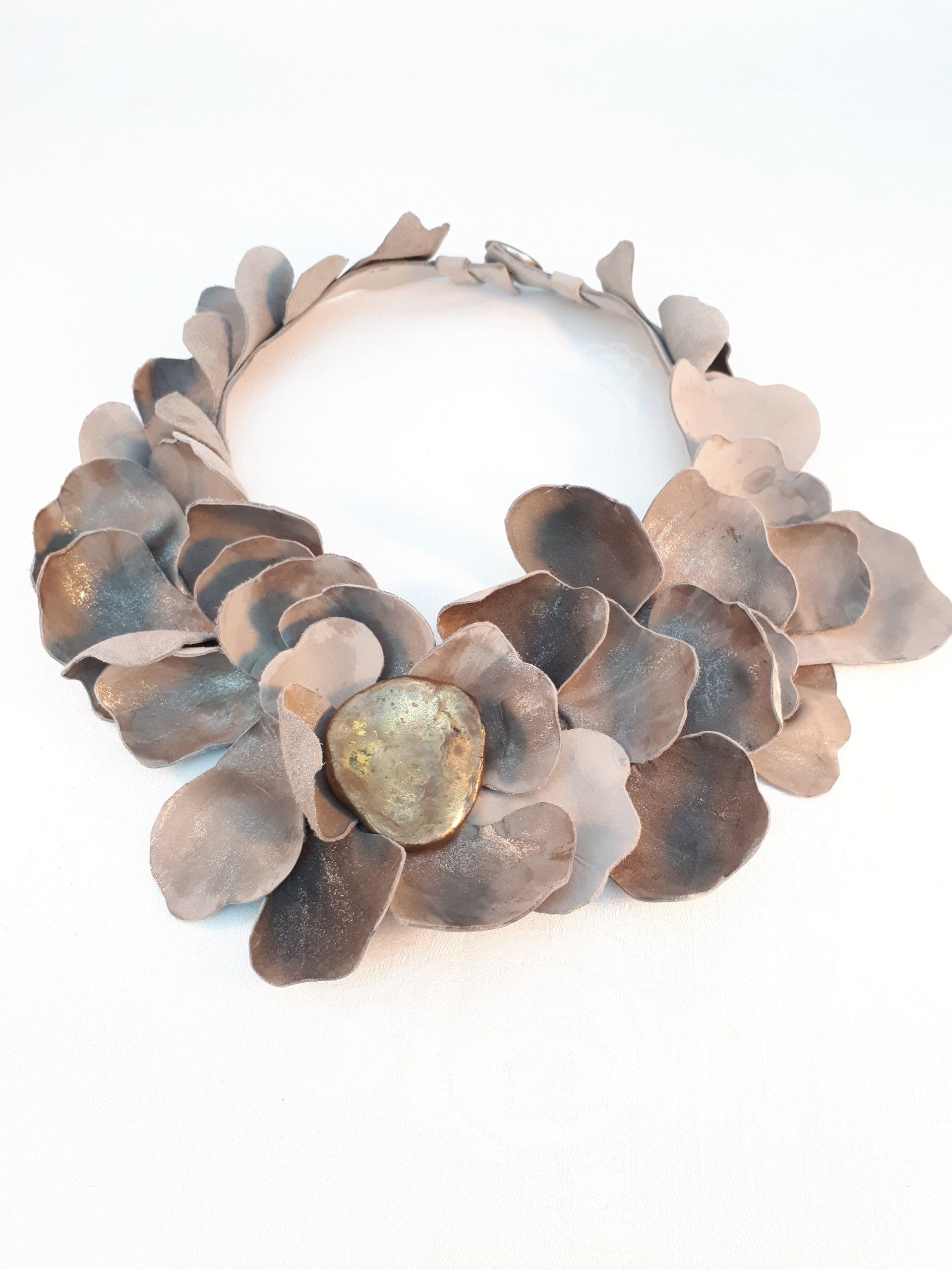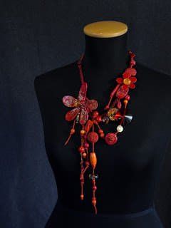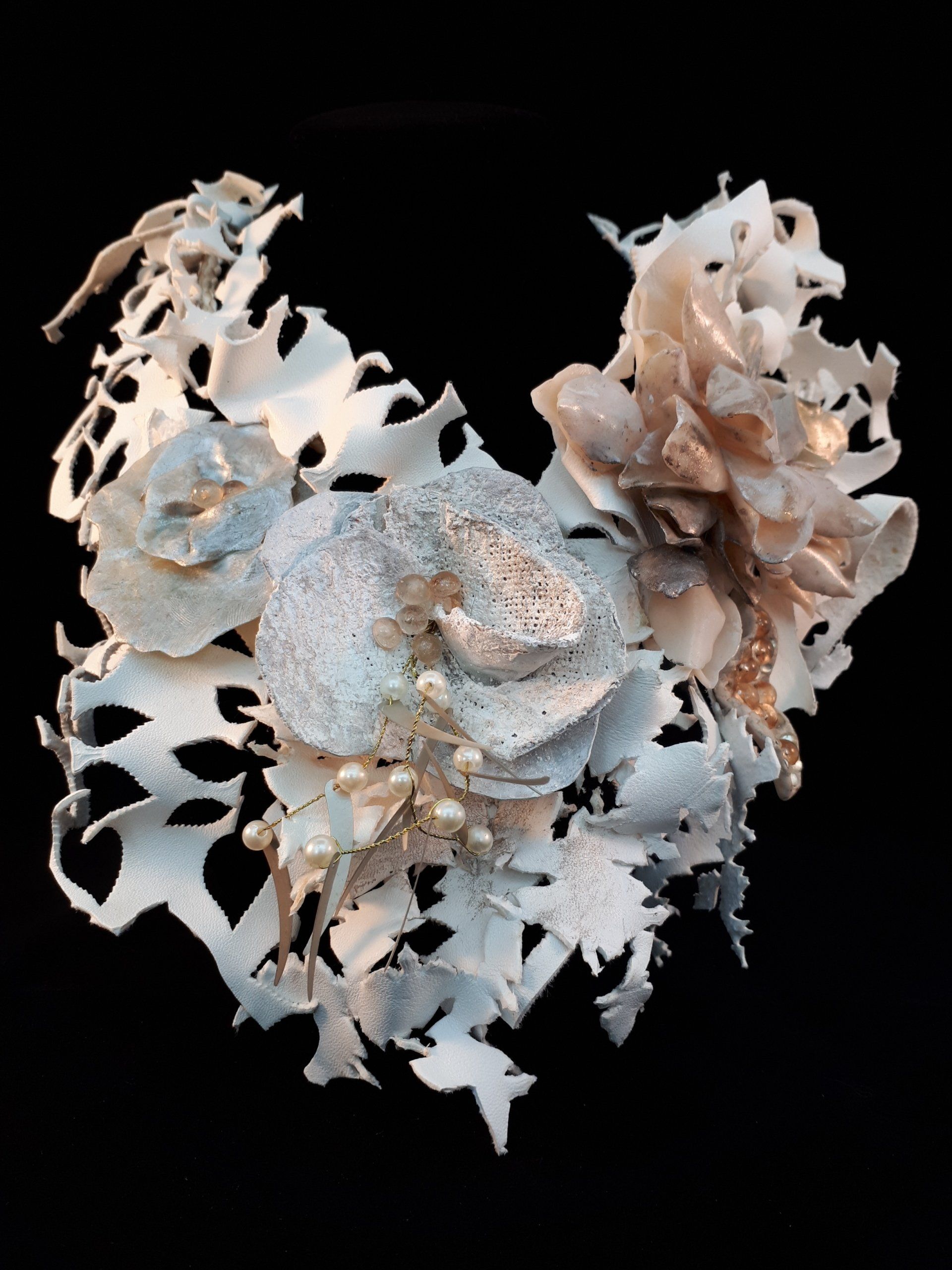 Bernard DepoorterEn 2010, sa rencontre avec Bernard Depoorter et la Haute Couture marque un nouvel apport dans ses créations et dans sa réflexion à propos du rôle du bijou qu’elle ne considère plus comme accessoire mais bien comme partie essentielle d’un tout. Et si la robe devenait bijou d’artiste ?
